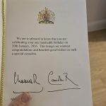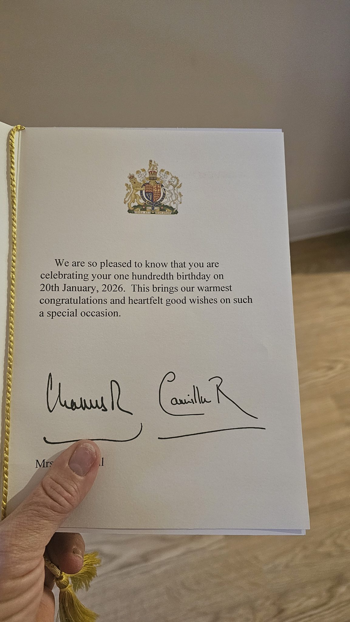 Our resident was delighted to receive a birthday card from the King and Queen on this very auspicious occasion.